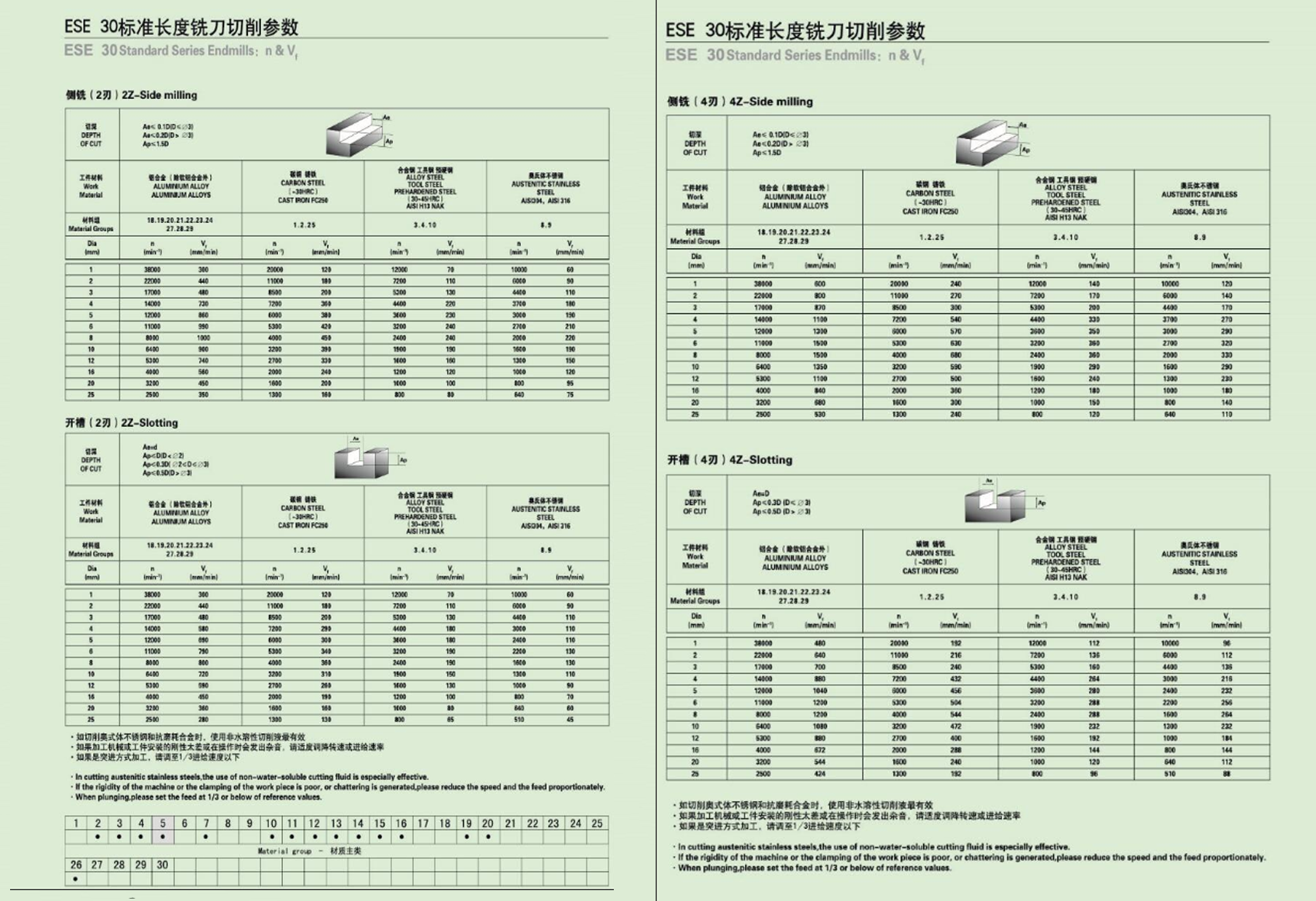 【ESE 30标准长度铣刀切削参数】