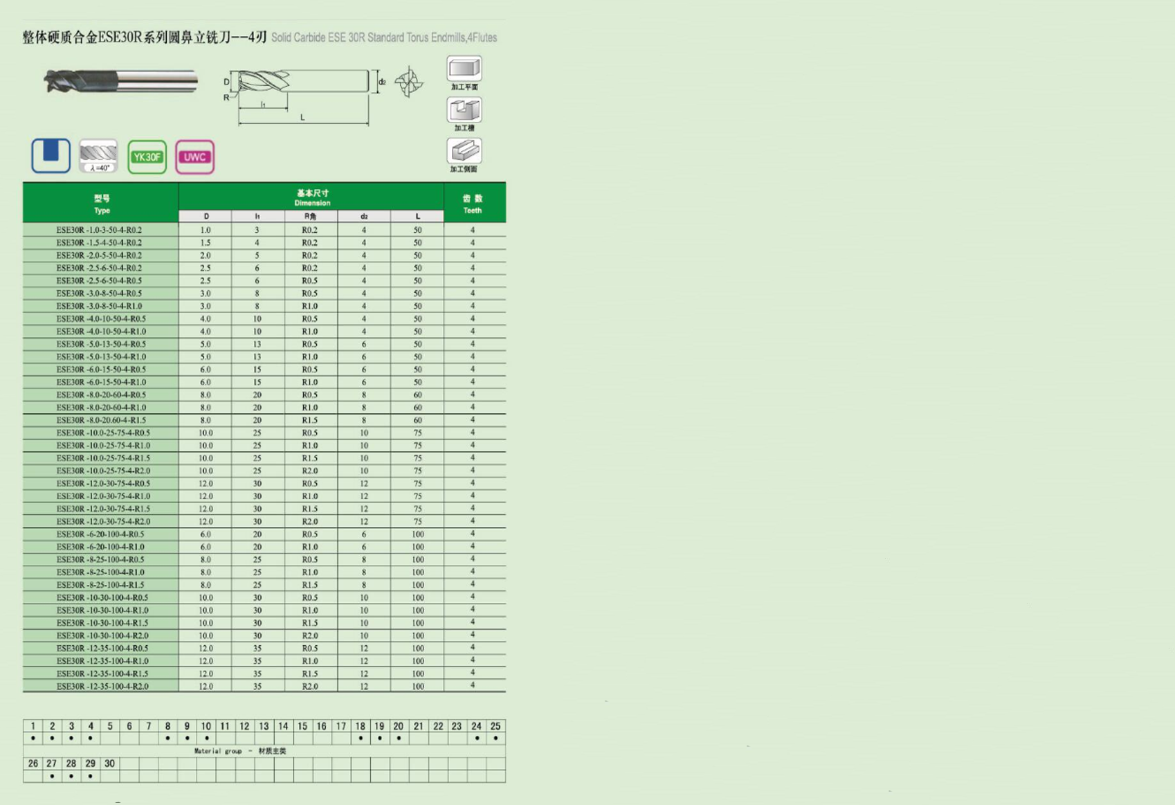 ESE 30R系列圆鼻立铣刀--4刃