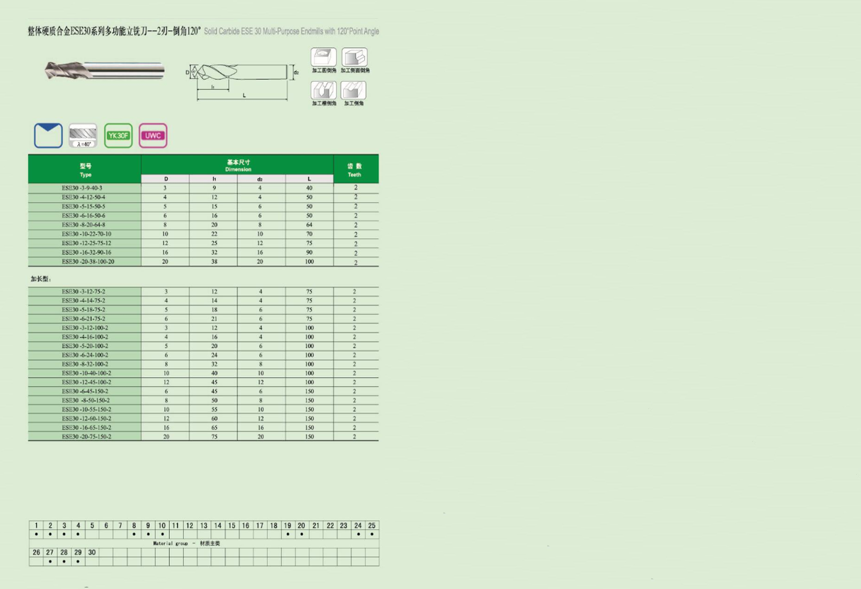 ESE 30系列多功能立铣刀--2刃-倒角120°
