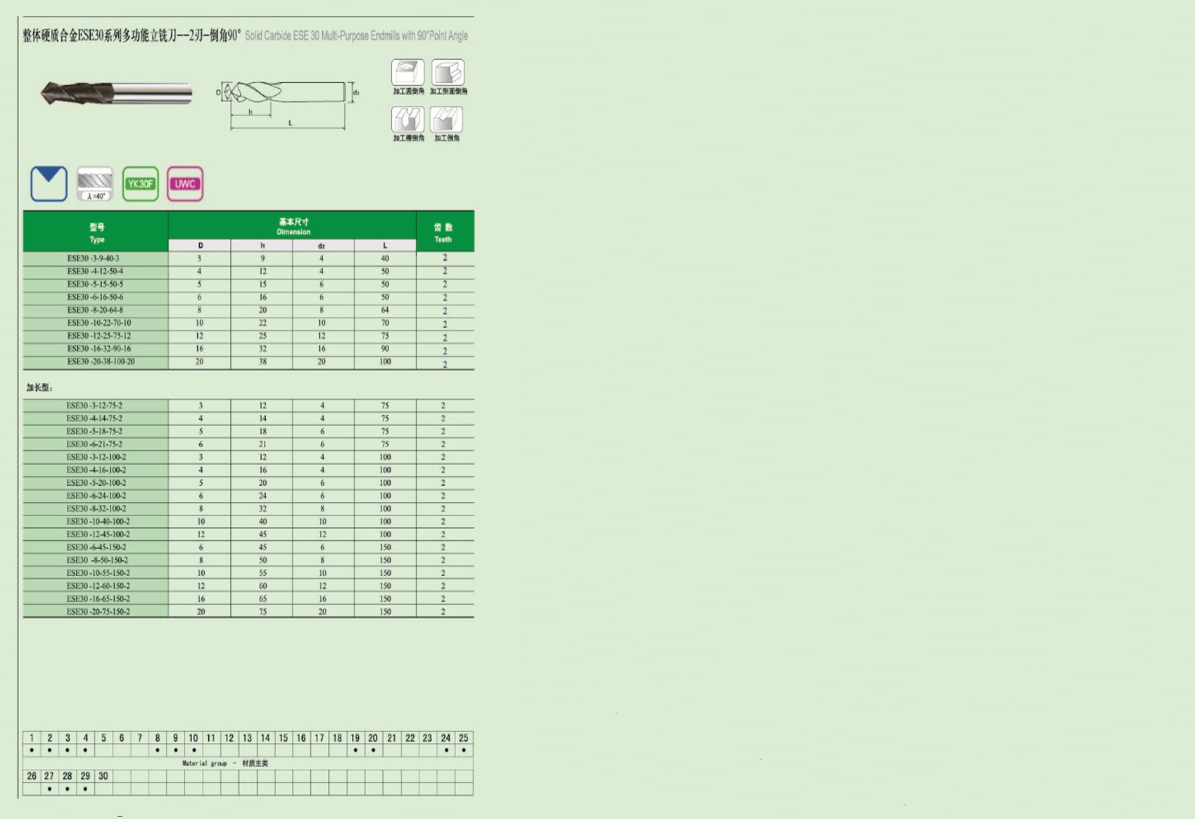 ESE 30系列多功能立铣刀--2刃-倒角60°