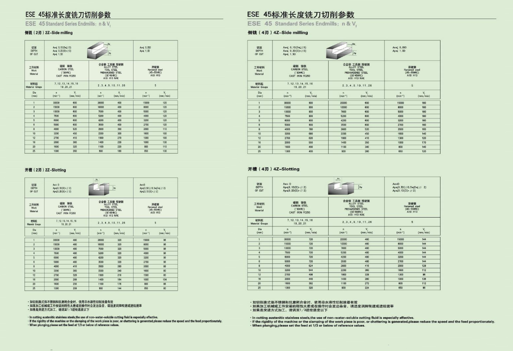 ESE 45加长型铣刀切削参数