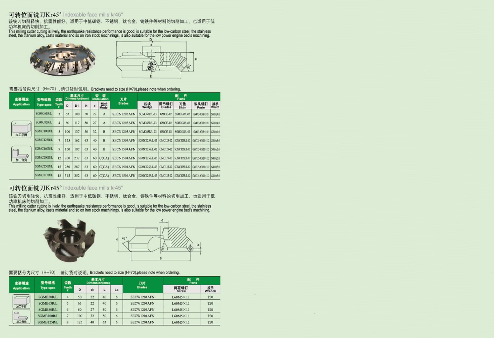 可转位面铣刀Kr45°