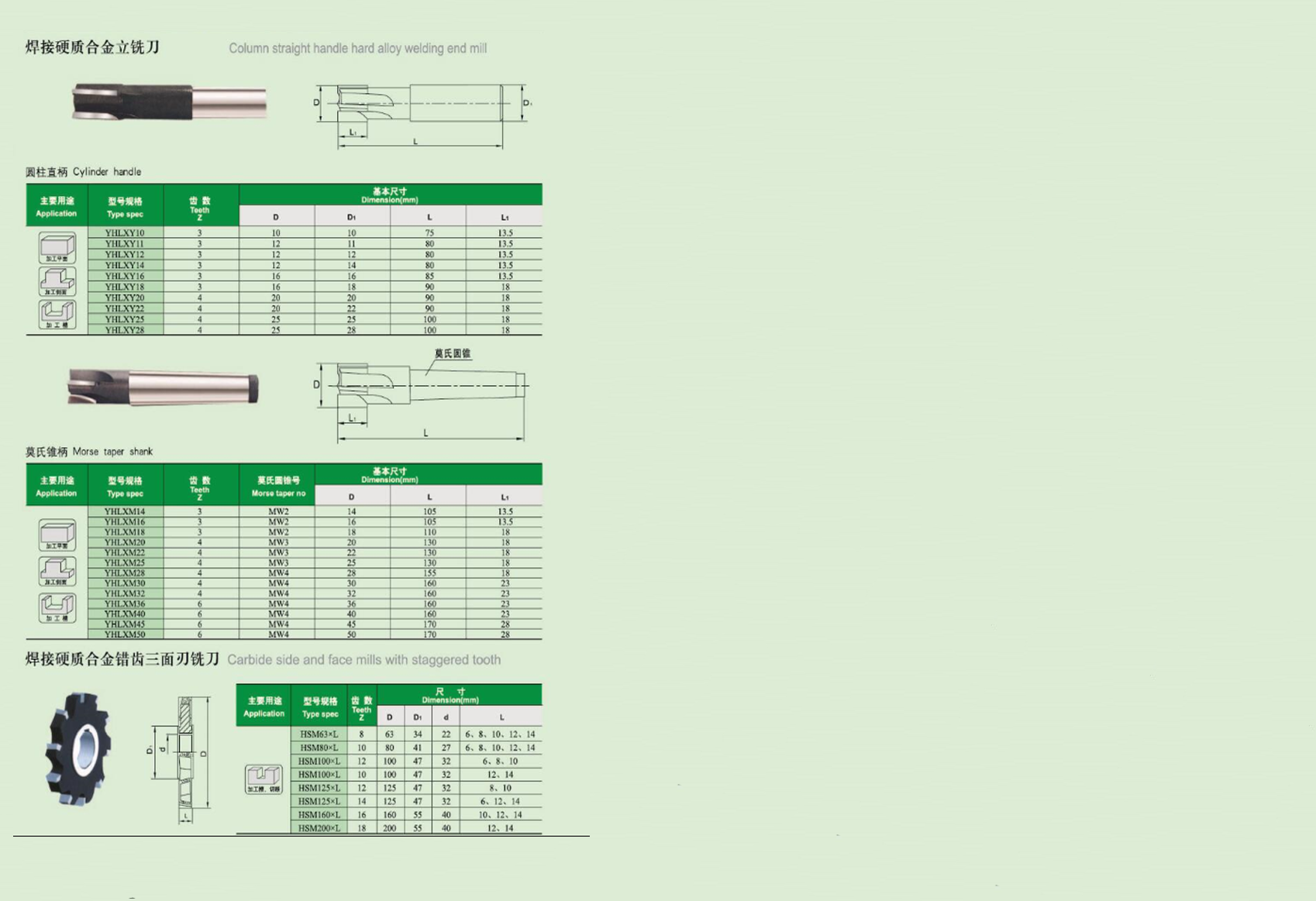 圆柱直柄、锥柄、错齿三面刃硬质合金焊接铣刀